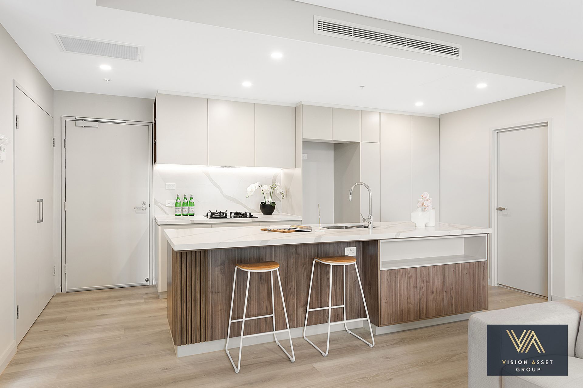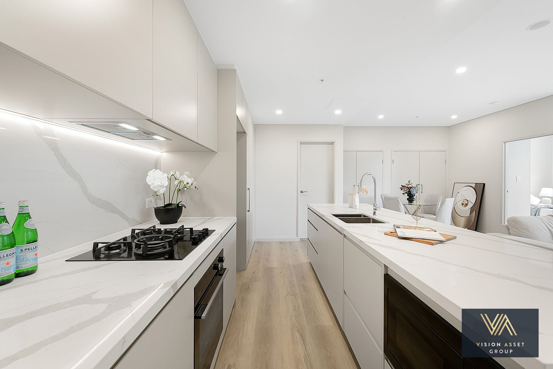 - Modern kitchen featuring stone benchtops and premium appliances